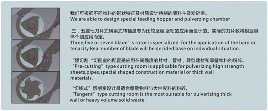 適合粉碎較為堅(jiān)硬的管材、厚壁物體和厚的片材等物料。